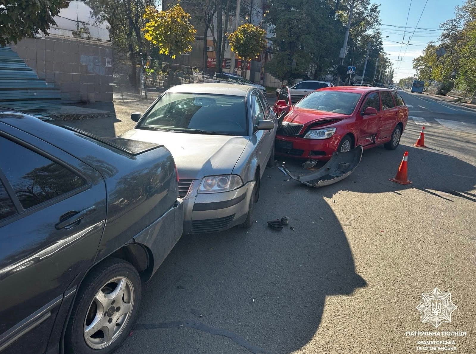 Унаслідок зіткнення авто Skoda Octavia у некерованому стані здійснила наїзд на припаркований Volkswagen, після чого були пошкоджені також транспортний засіб Chery Amulet та ще один автомобіль Skoda Octavia.