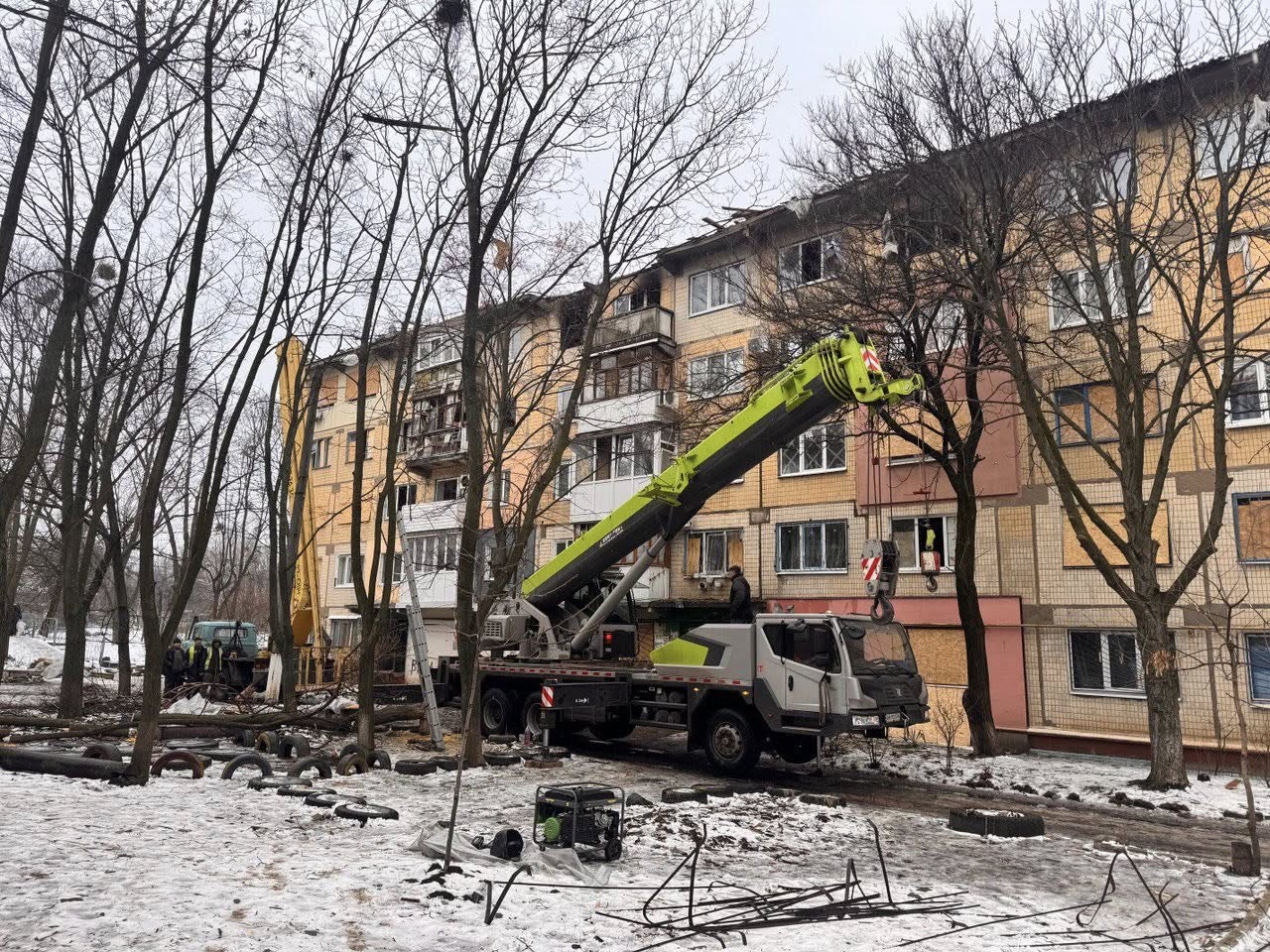 На місці влучання російського БпЛА «Герань-2» працюють комунальники, управляюча компанія, благодійники.