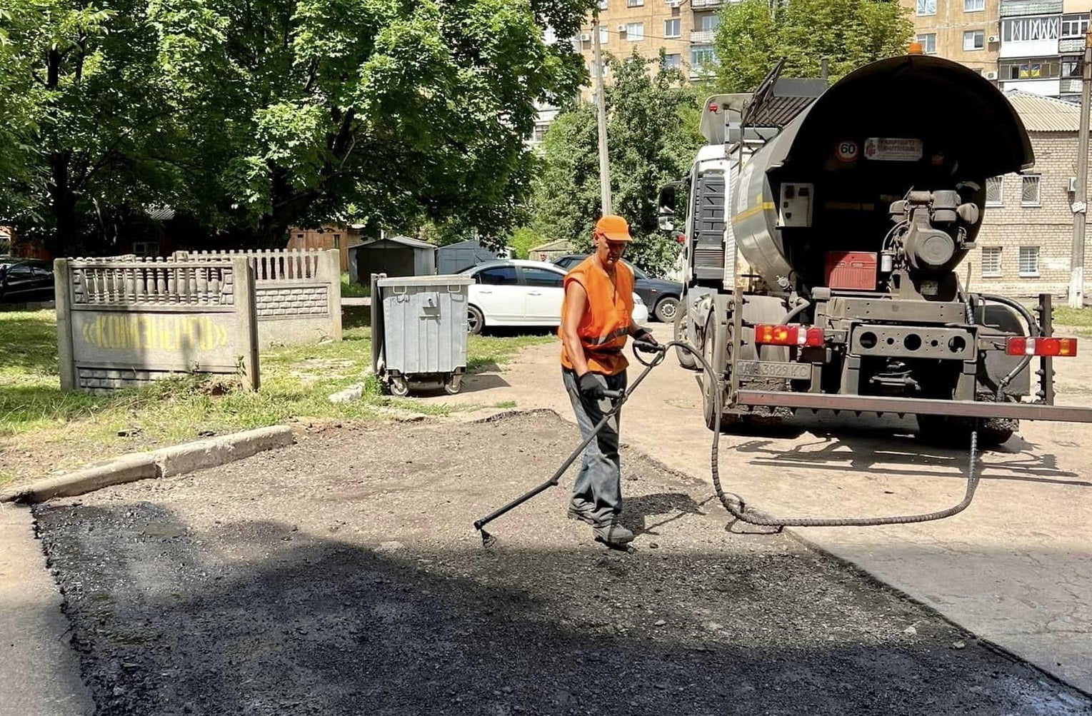 У Краматорську сьогодні, 22 липня, комунальники ремонтують дороги.