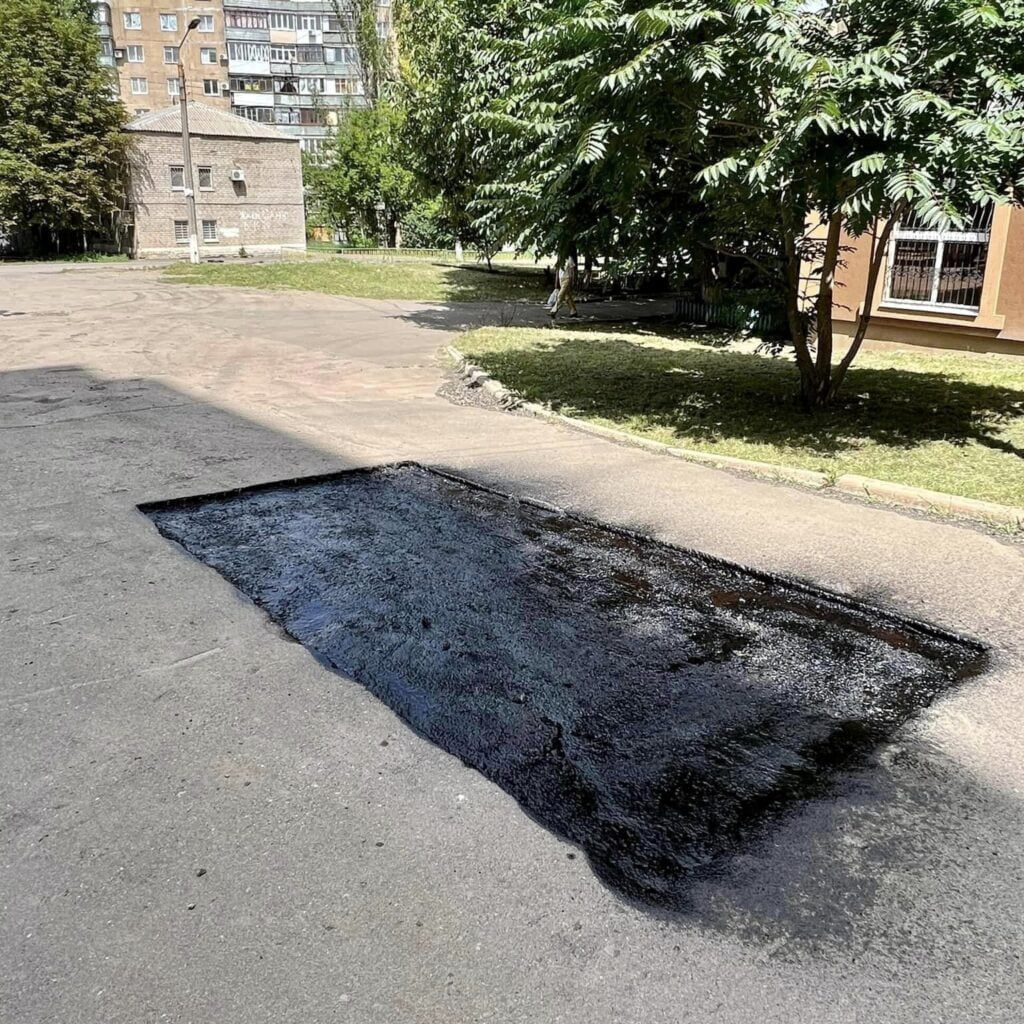 Ремонт асфальтового покриття внутрішньоквартальних доріг виконано по проспекту Незалежності 38, 40, 42.