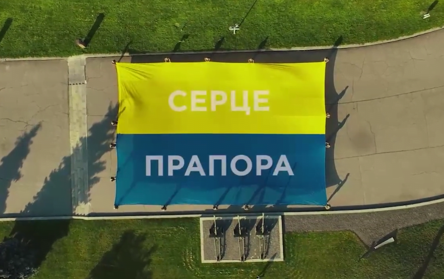 У Києві підняли Прапор України який привезли з Краматорська він з підписами бійців з усіх напрямків фронту.