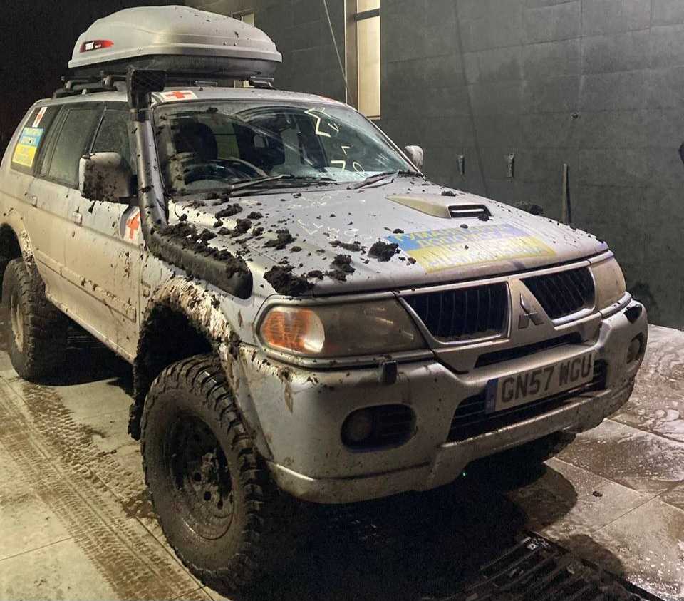 «Mitsubishi Shogun Sport повнопривідний джип, вона трошки перероблена, тому вище ніж звичайні машини. Там не було гуманітарної допомоги. Там була сумка з інструментами, дефібрилятор і сумка першої медичної допомоги», – розповів волонтер