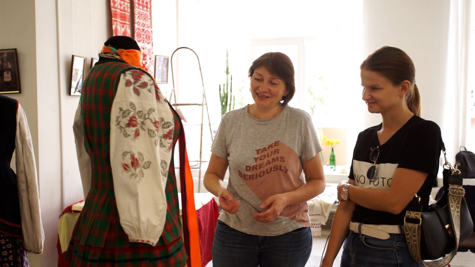 Головна зберігачка фондів «Музейно-виставкового центру» Оксана Кондратенко зазначила, що в теперішніх обставинах дуже важливо об’єднувати країну різними способами. Дана експозиція буде ще однією можливістю пізнати детальніше українську культуру. Так, аналізуючи виставку, прослідковується відмінність між слобожанською культурою та бойківською. Зокрема, нашому регіону властиві геометричні орнаменти, а східному — квіткові мотиви.