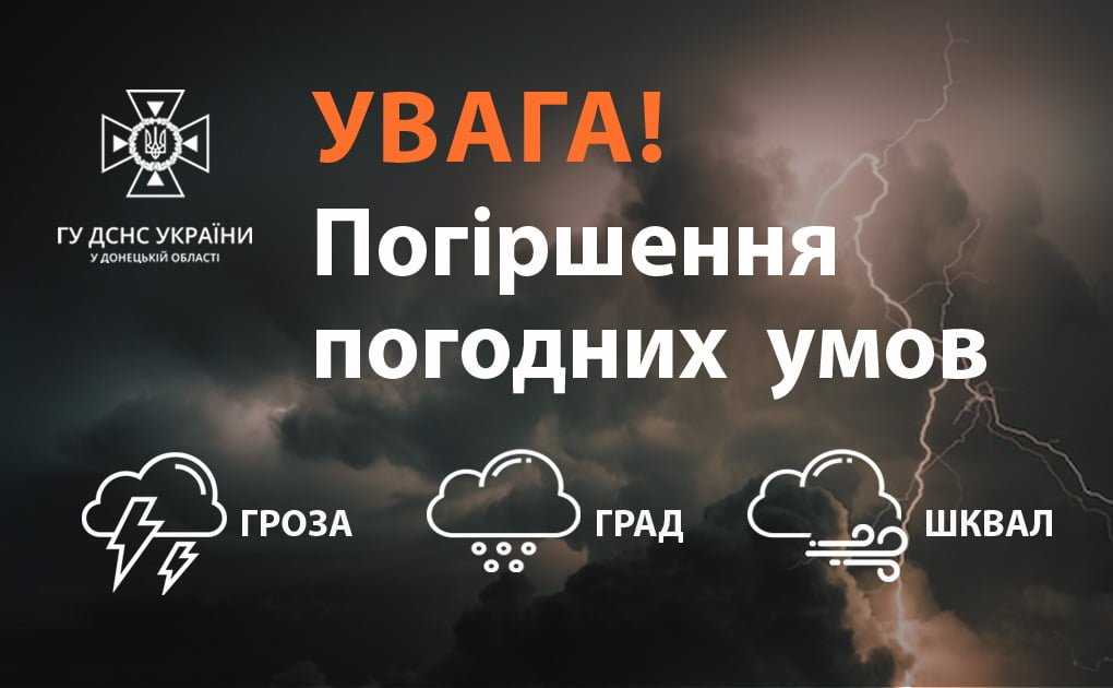 Увага! 11 та 12 серпня на території Донецької області спостерігається погіршення погодних умов (I рівень небезпечності, жовтий).