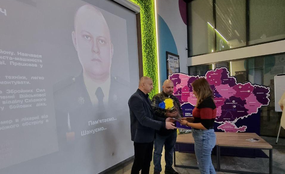 Заступник міського голови Бахмута Сергій Родін та начальник Управління з питань ветеранської політики Донецької ОДА Артур Насібян вручили рідним 16 полеглих воїнів-бахмутян посмертні відзнаки «Захиснику України – Герою Бахмутської громади» та грошові сертифікати.