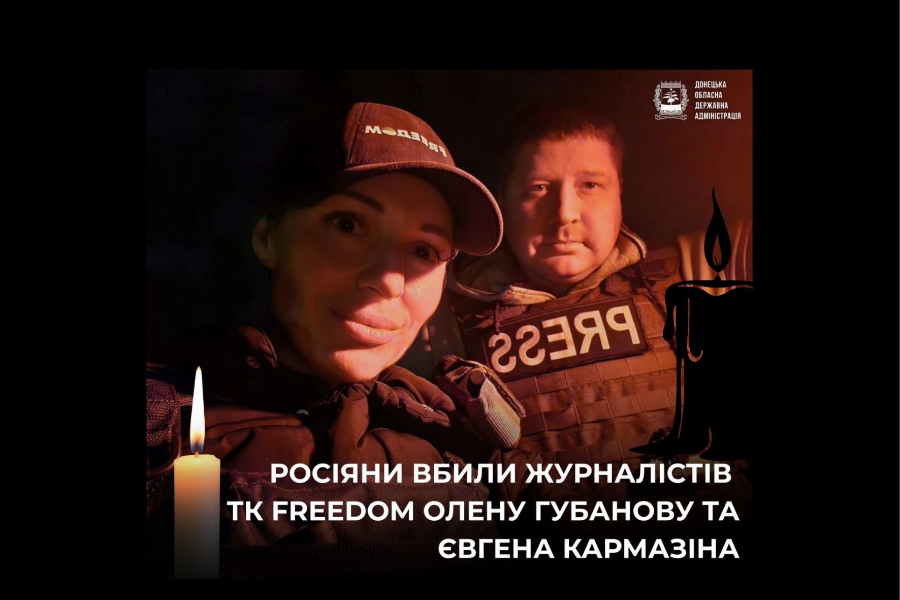 Внаслідок удару ворожого безпілотного літального апарата «Ланцет» у Краматорську загинули журналістка телеканалу “Freedom” Олена Губанова та оператор Євген Кармазін.