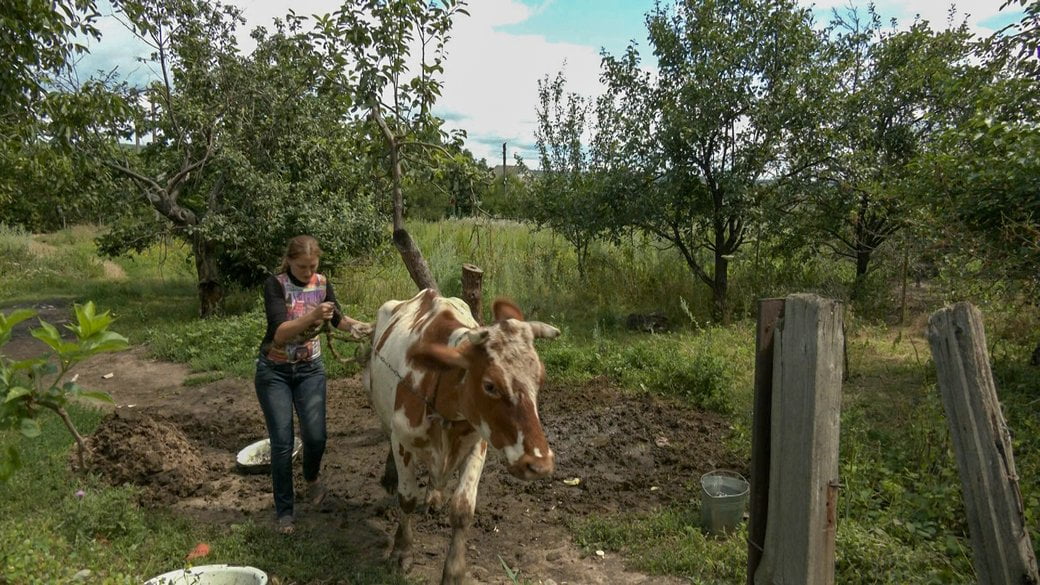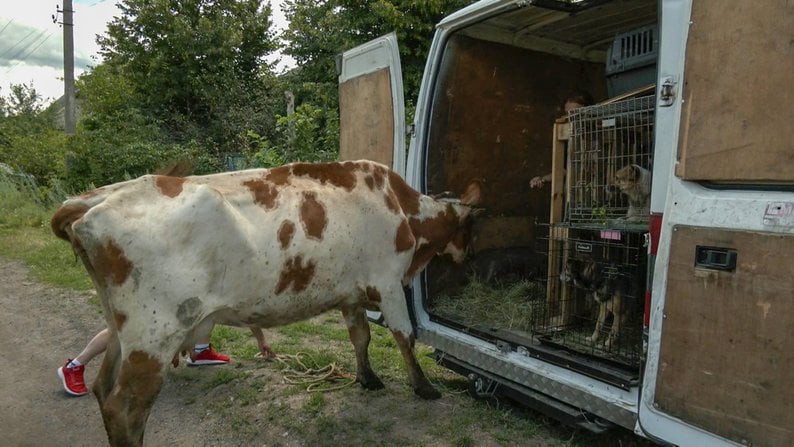 Родина вирішила виїхати в евакуацію, коли з’явилась можливість забрати всіх тварин. Серед них і корова.