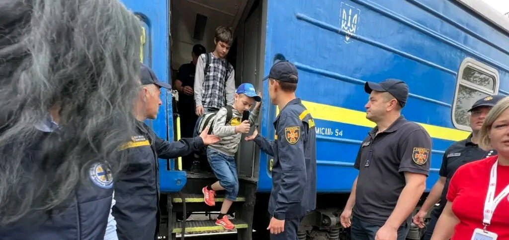 На залізничному вокзалі Бердичева їх зустріли рятувальники, поліцейські, волонтери, представники місцевих органів влади, релігійних та громадських організацій.