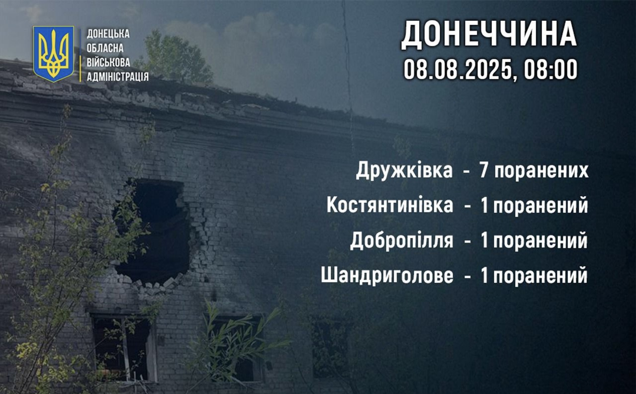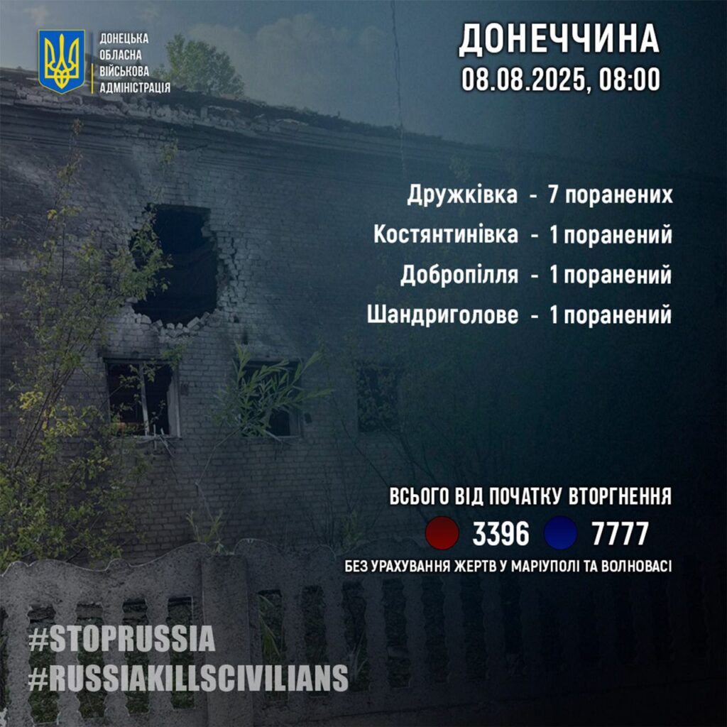 За 7 серпня росіяни поранили 10 жителів Донеччини.