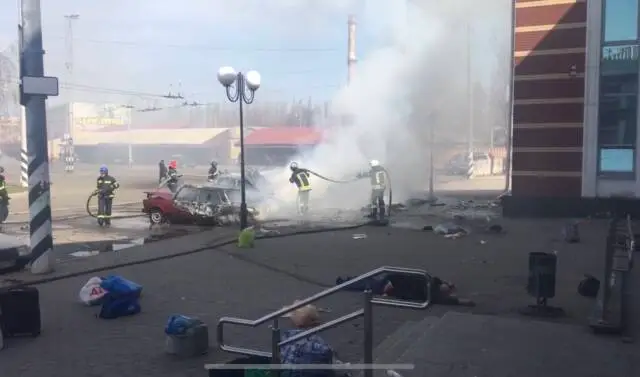Я походив по околицях вокзалу, у вокзалі, поки люди збиралися. Там була польова кухня, наливали чай. І потім я зняв свій останній кадр перед влучанням цієї ракети – стоїть бабуся з онуком і чоловік на візку інвалідному. І вона питає волонтера, на яку платформу їй пройти. І якраз після цього був вибух.