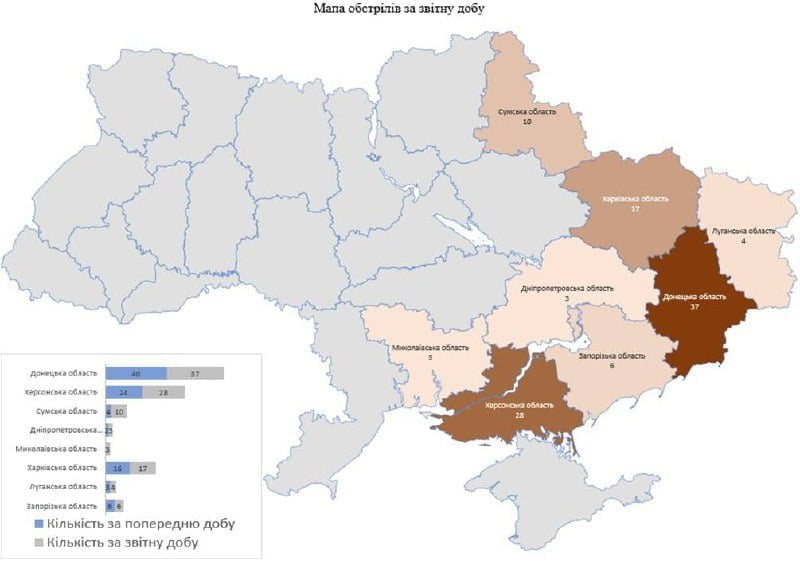 Війська російської федерації минулої доби обстріляли 108 населених пунктів у восьми областях України, ворожим вогнем убиті троє мирних жителів, ще 20 цивільних зазнали поранень.