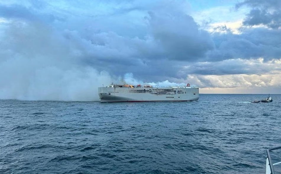 Берегова охорона повідомила, що причина пожежі невідома, але її вперше виявили поблизу електромобіля. Вогонь охопив судно за 27 км на північ від острова Амеланд. Усіх 23 членів екіпажу евакуювали. Їх доставили до лікарні гелікоптером.