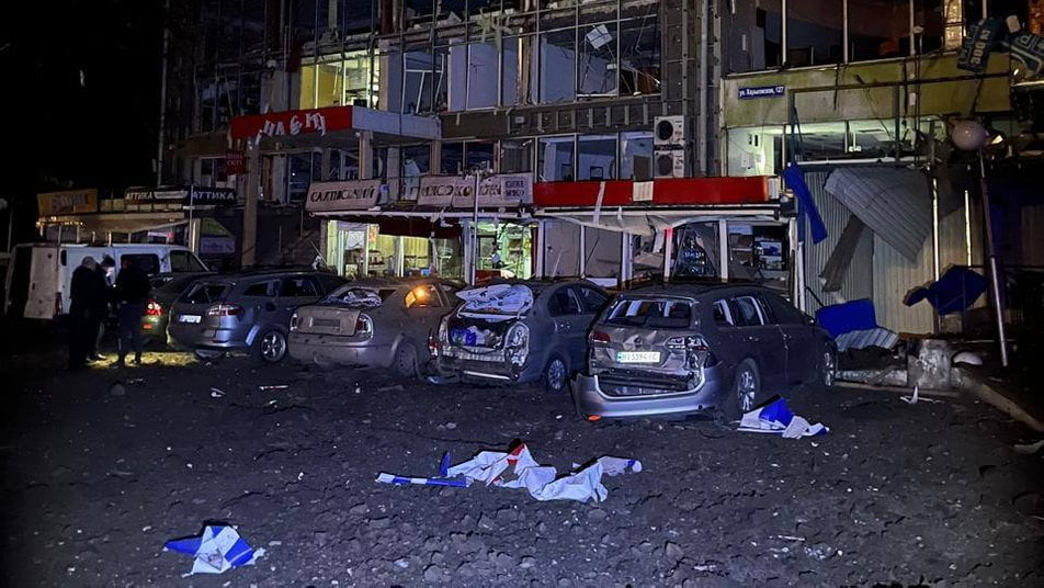 “Влучання в землю, в межах житлової забудови. Внаслідок обстрілу вибиті вікна у 9-поверховому житловому будинку. Пошкоджено фасад ТРЦ, банку, крамниці, готелю, 13 автівок”, — повідомив керівник ОВА Синєгубов.