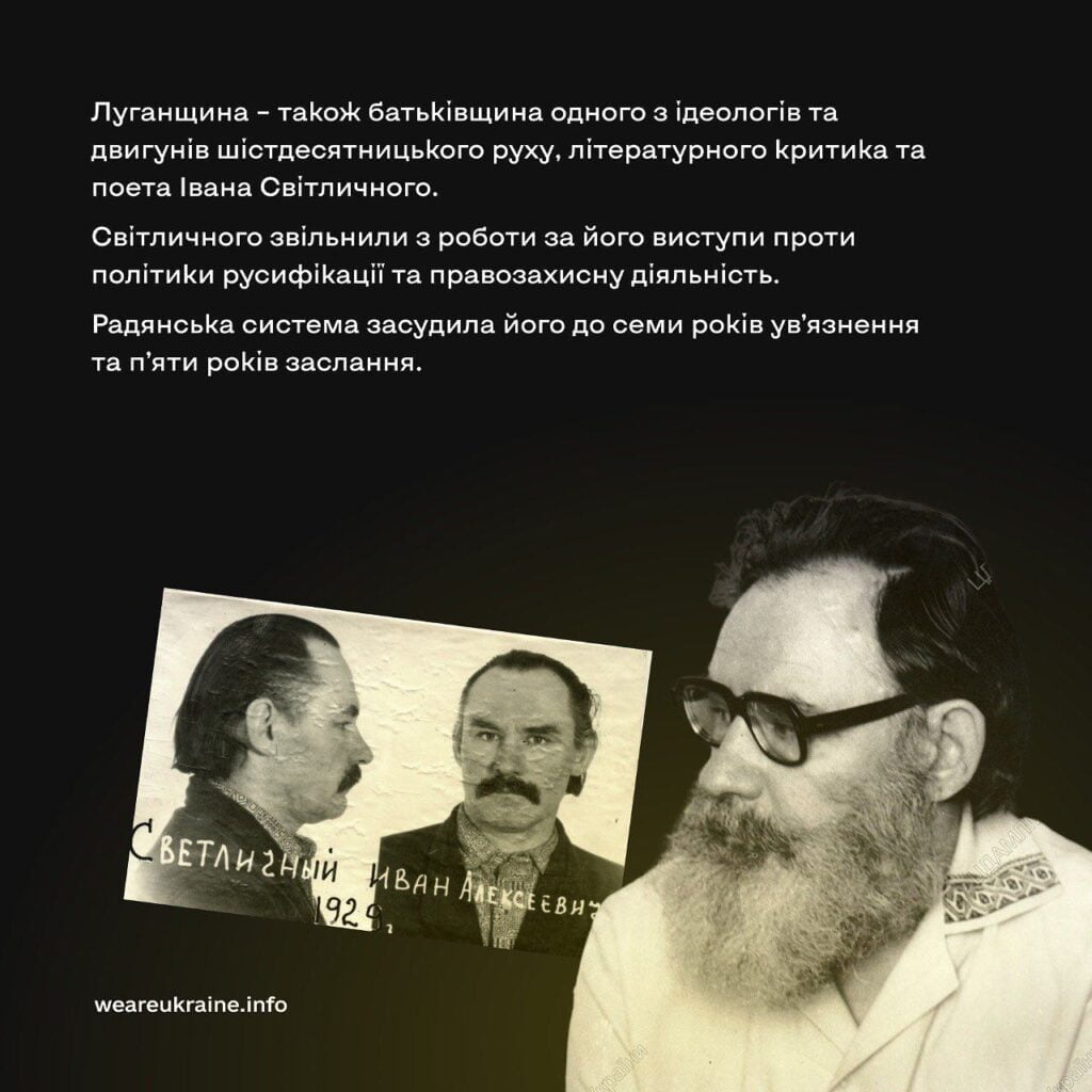 Луганщина – також батьківщина одного з ідеологів та двигунів шістдесятницького руху, літературного критика та поета Івана Світличного.