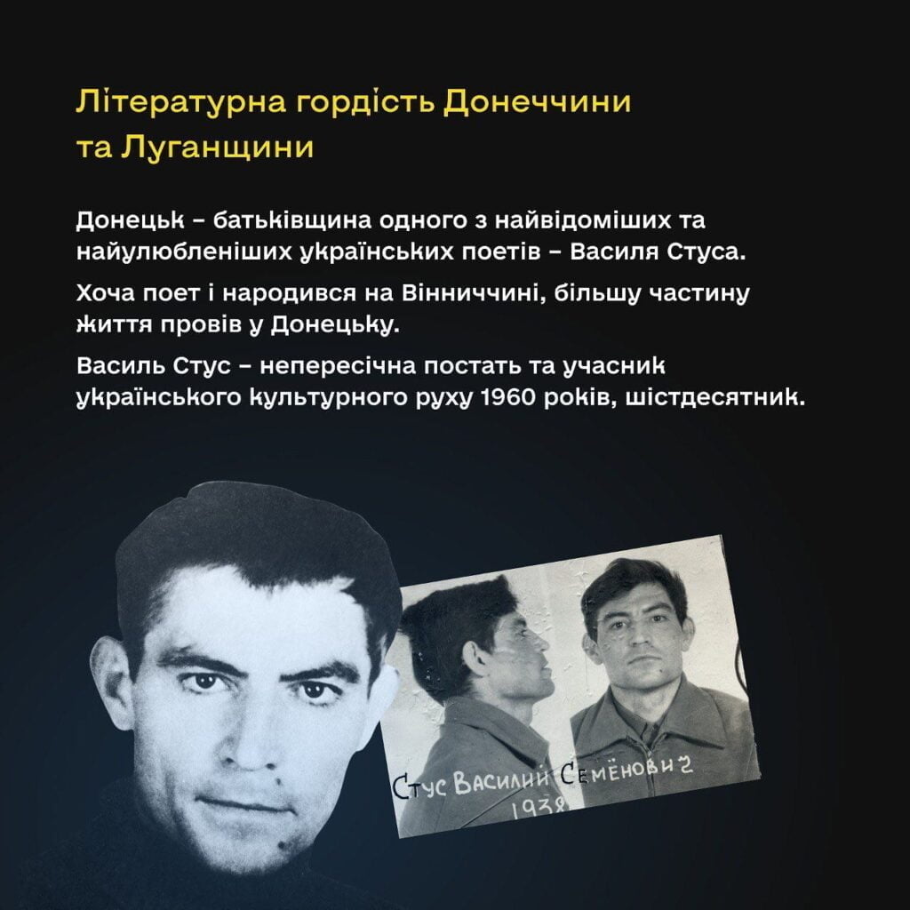Донецьк – батьківщина одного з найвідоміших та найулюбленіших українських поетів – Василя Стуса..