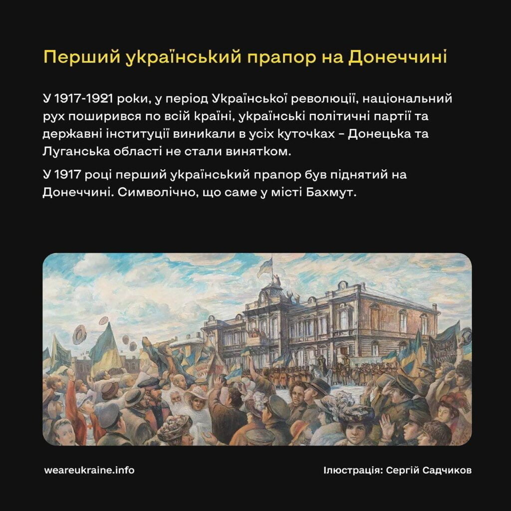 У 1917 році перший український прапор був піднятий на Донеччині. Символічно, що саме у місті Бахмут.
