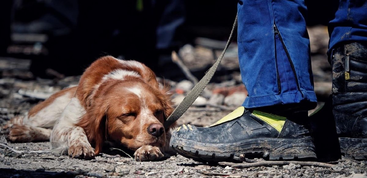 Пес-рятивник, який кілька годин шукав людей в Умані, заснув на завалах будинку