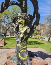 Як видно на знімку, на передній частині пам’ятника невідомі жовтою фарбою зробили напис “ярусс”.