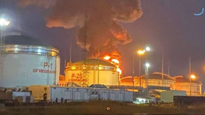 “У селищі Волна Темрюкського району (Краснодарський край РФ – ред.) загорівся резервуар із нафтопродуктами. Пожежі присвоєно вищий ранг складності. За попередньою інформацією, жертв і постраждалих немає”.