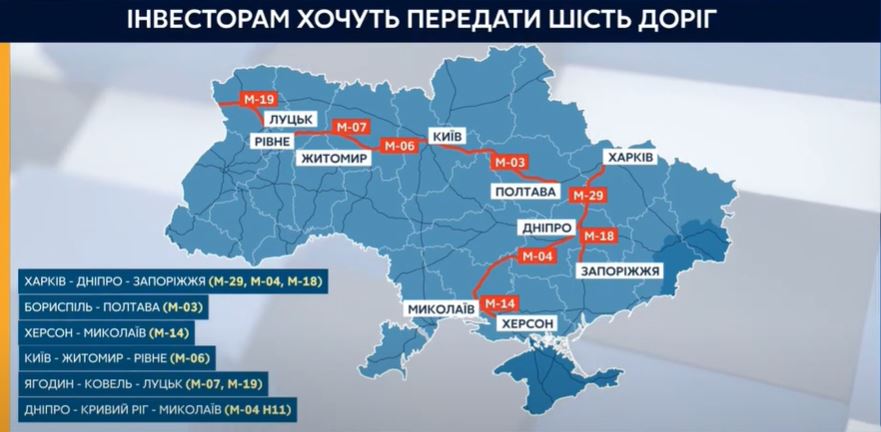 У Мінінфраструктури вже навіть визначилися з першими 6 трасами, які планують віддати інвестору. Це Харків – Дніпро – Запоріжжя, траса з Борисполя до Полтави, Херсон – Миколаїв. Зі столиці можна буде доїхати до Рівного через Житомир, Ягодин – Ковель – Луцьк і Дніпро – Кривий Ріг – Миколаїв.