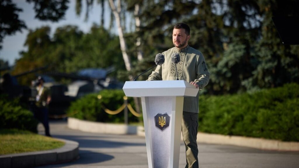 Президент України Володимир Зеленский взяв участь в урочистостях із нагоди Дня Державного прапора України — у церемонії підняття синьо-жовтого стяга у Києві.