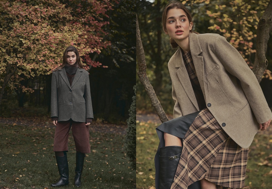 • жакет у поєднанні з денімом, де образ завершують кеди, черевики або мюлі та акцентні аксесуари.