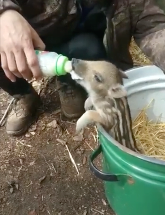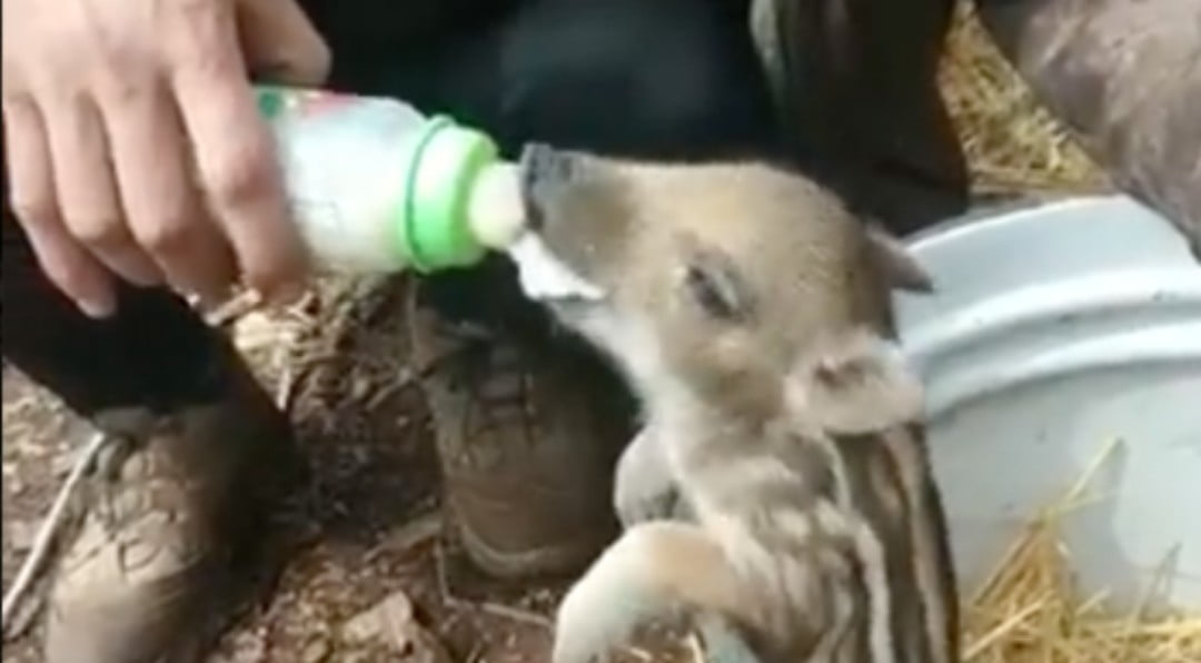 Один з українських захисників зумів приручити порося і тепер ретельно доглядає за ним. Зокрема, боєць власноруч вигодовує кабанчика молоком із дитячої пляшечки.