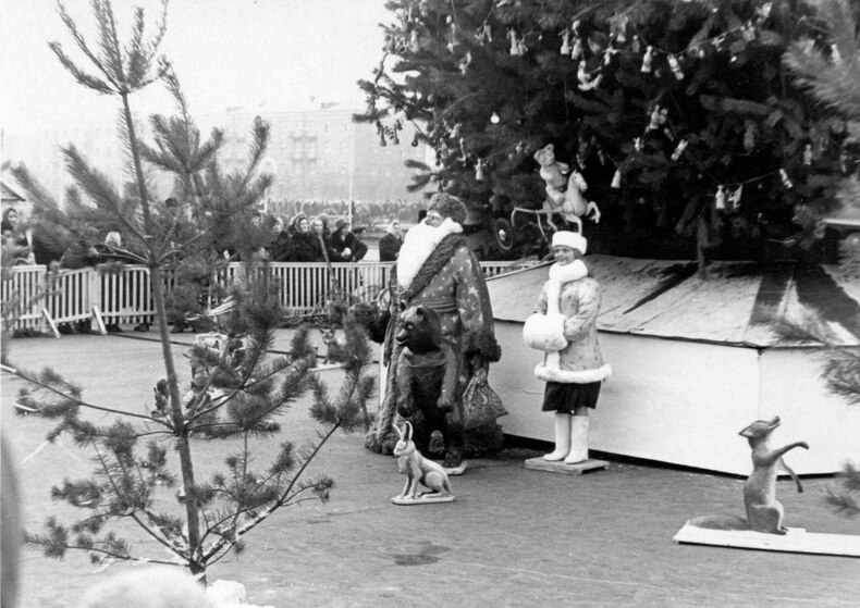 На фото тих років видно прикрашені ялинки, тодішніх святкових героїв Діда Мороза та Снігуроньку, масові гуляння, дітей і родин на центральних майданчиках міста.